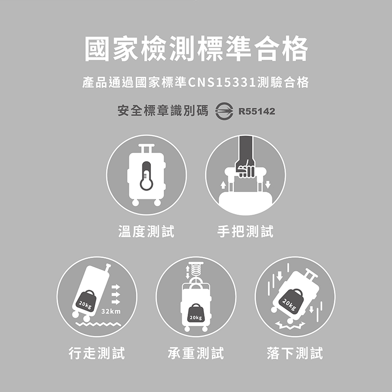 ● SGS國家核可實驗室,拉桿、行走、落下、裝載測試合格