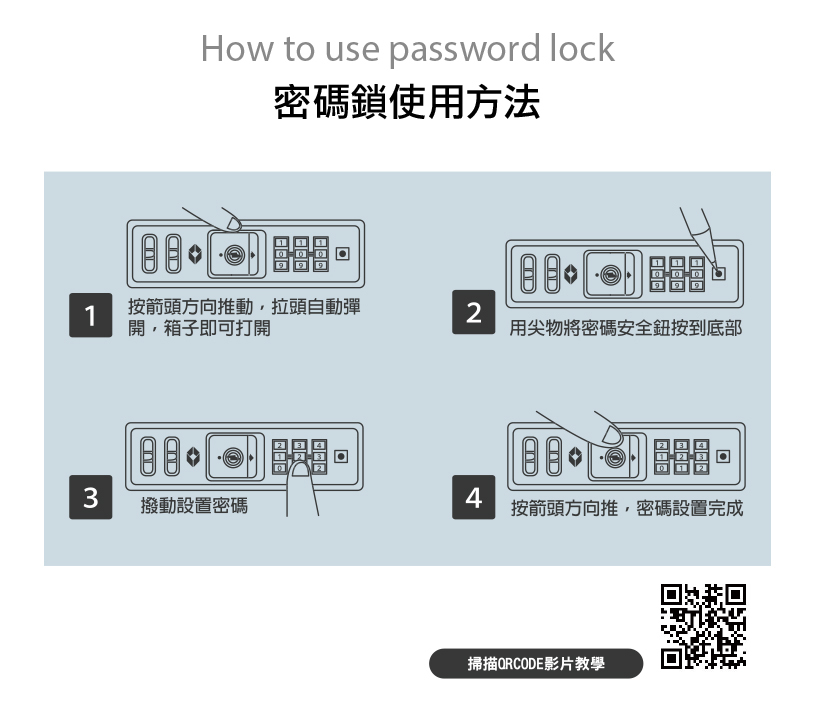 ● 崁入式TSA國際密碼鎖