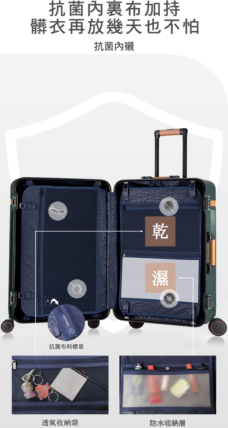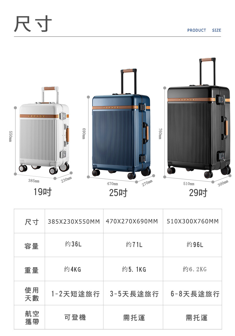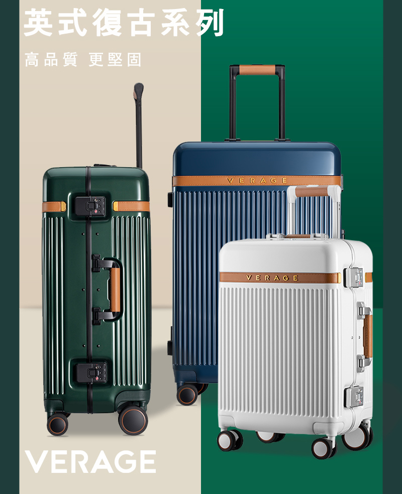 VERAGE英式復古系列行李箱(19吋)+3 WAY 輕量折疊旅行袋+旅用壓縮收納袋(S、M、L)