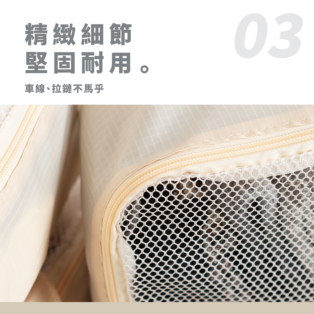 ● 堅固耐用。車線、拉鏈不馬虎