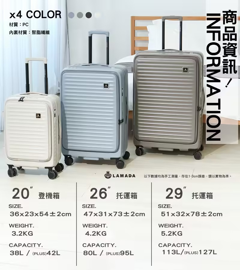 20+26快閃出遊全能組【LAMADA】II代極簡漫遊系列前開式行李箱
