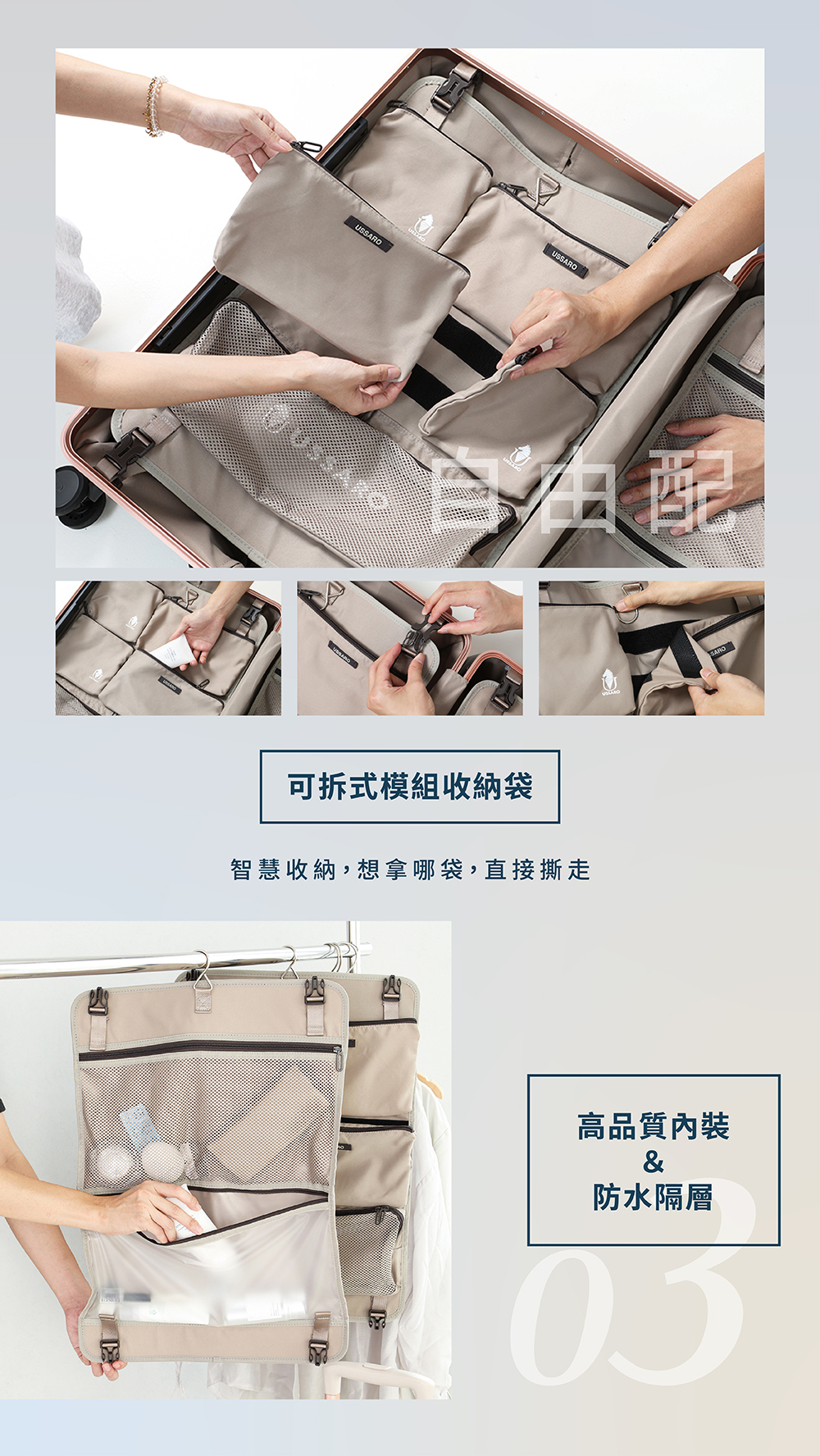● 可拆卸收納袋