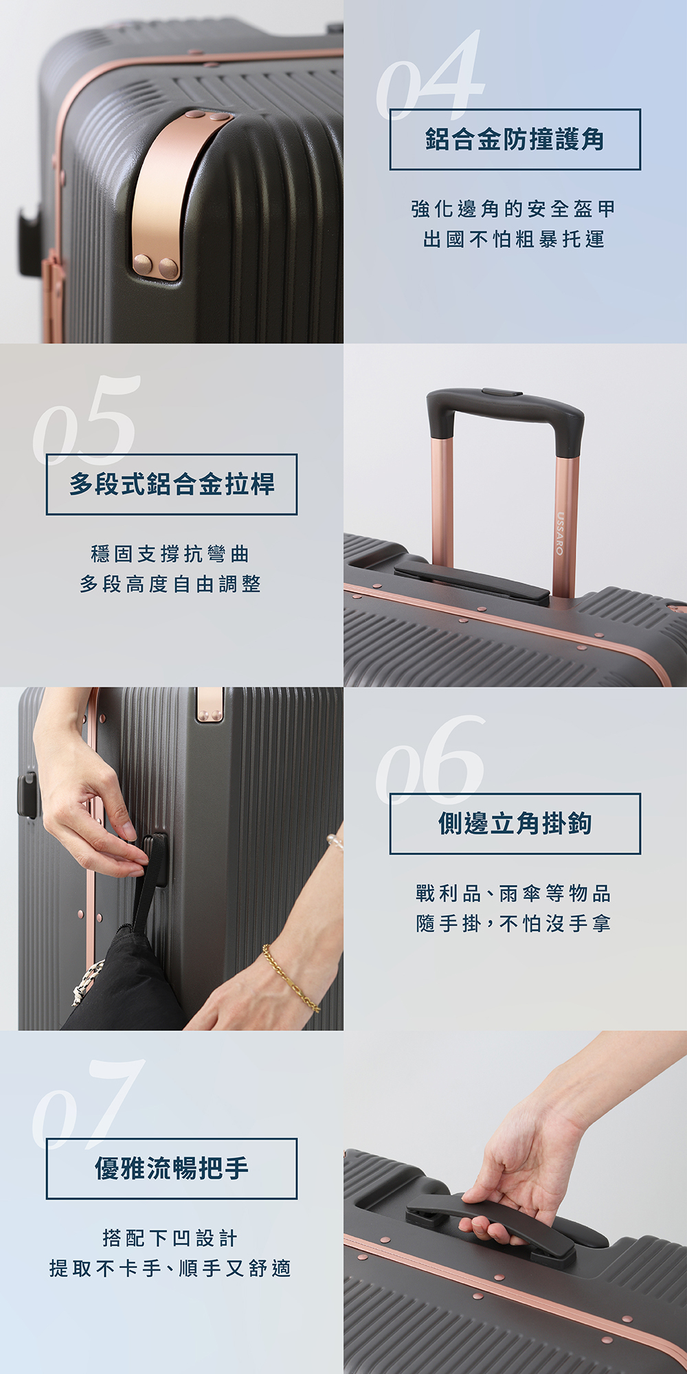 ● 鋁合金防撞護角,強化邊角的安全盔甲