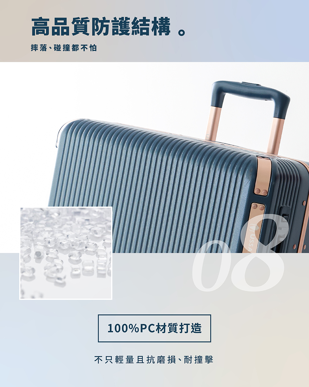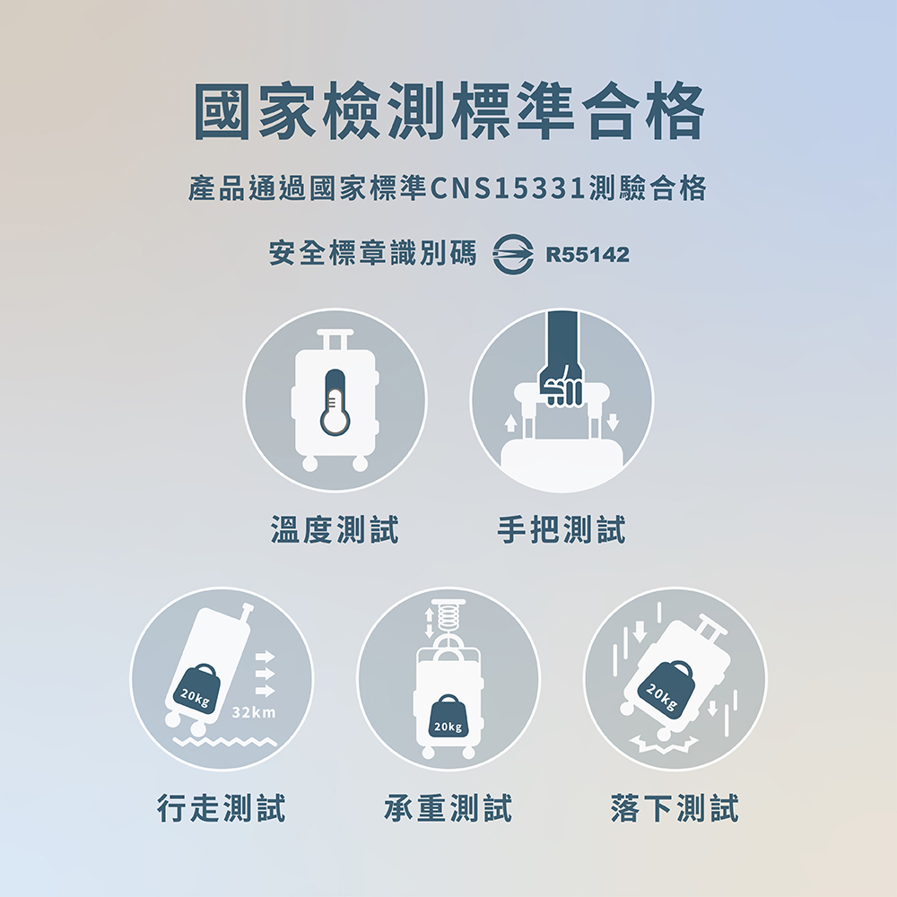 ● SGS國家核可實驗室,拉桿、行走、落下、裝載測試合格