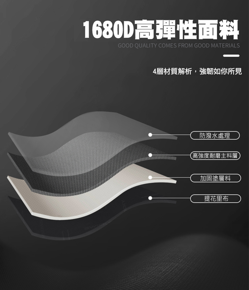 ● 1680D防潑水面料材質