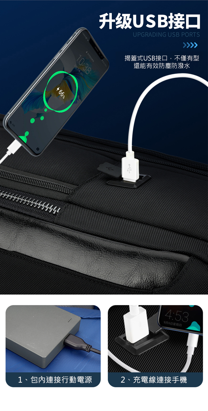 ● 側邊USB充電設計