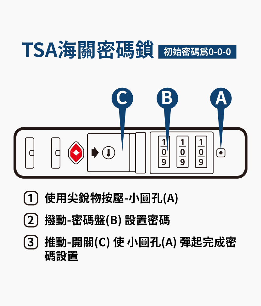 ● 崁入式TSA國際三碼密碼鎖